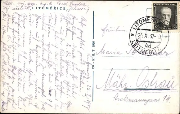 Zustand, siehe Scan, gelaufen, 1937 - ca 14 cm X 9 cm