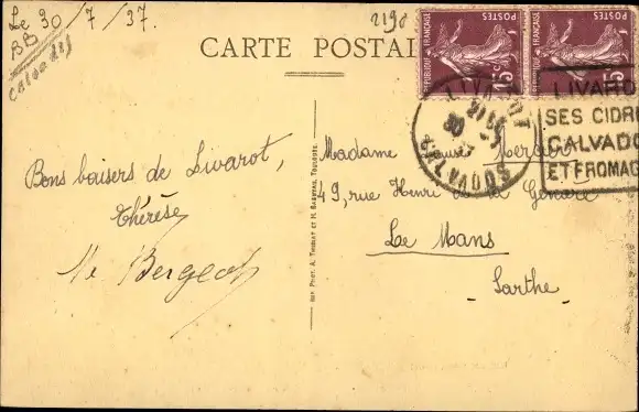 Zustand, siehe Scan, gelaufen, 1937 - ca 14 cm X 9 cm