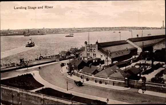 Ak Liverpool Merseyside England, Bootssteg und Fluss