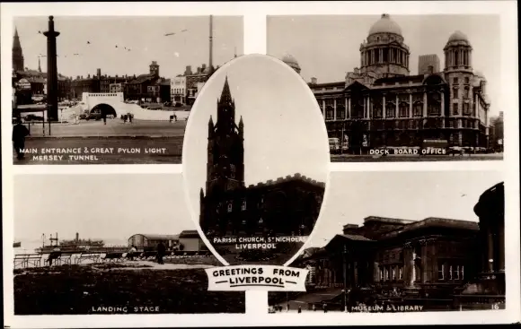 Ak Liverpool Merseyside England, Mersey Tunnel, Dock Board Office, Museum, Bibliothek