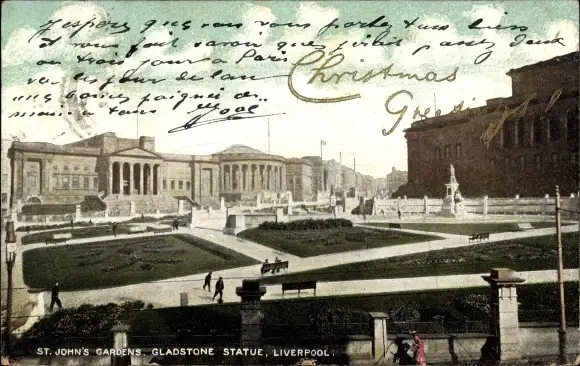 Ak Liverpool Merseyside England, St John's Gardens and Gladstone Statue