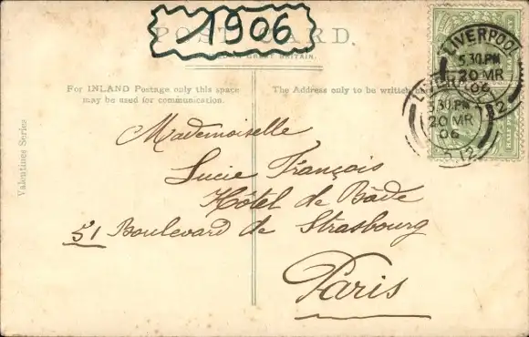Zustand, siehe Scan, gelaufen, 1906 - ca 14 cm X 9 cm