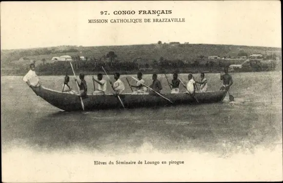 Ak Loango Französisch Kongo, Eleves du Seminaire en pirogue