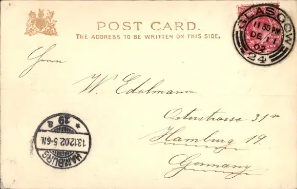 Zustand, siehe Scan, gelaufen, 1902 - ca 14 cm X 9 cm