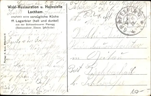 Ak Lochham Gräfelfing in Oberbayern, Wald Restauration, Bes. Simon Ipfelkofer