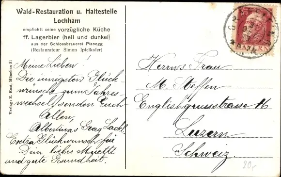 Zustand, siehe Scan, gelaufen, 1913- Inh. Simon Ipfelkofer - ca 14 cm X 9 cm