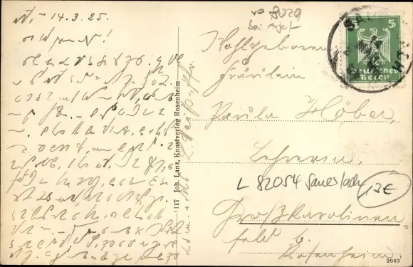 gelaufen 1925, Eckknick links unten, sonst guter Zustand