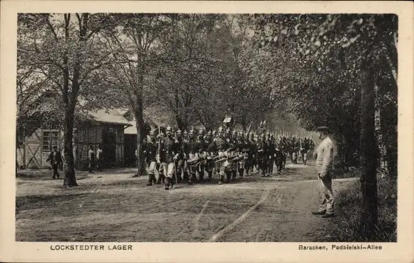Ak Lockstedt in Holstein, Lockstedter Lager, Baracken, Podbielski-Allee, Soldaten