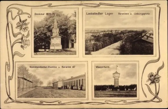 Ak Lockstedt in Holstein, Lockstedter Lager, Baracken, Übungsplatz, Kantine, Denkmal 1870-71