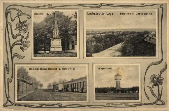 Ak Lockstedt in Holstein, Lockstedter Lager, Denkmal 1870.71, Baracken, Wasserturm, Kommandan...