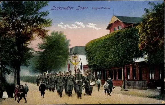 Ak Lockstedt in Holstein, Lockstedter Lager, Lagerstraße, marschierende Soldaten