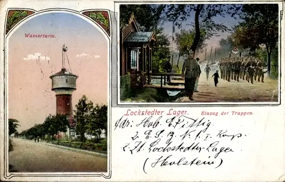 Ak Lockstedt in Holstein, Lockstedter Lager, Wasserturm, Einzug der Truppen