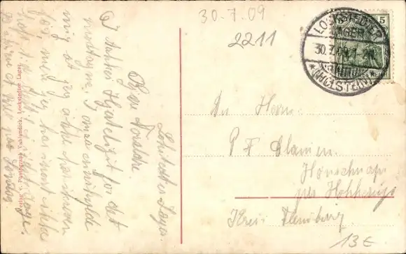 Zustand, siehe Scan, gelaufen, 1909 - ca 14 cm X 9 cm