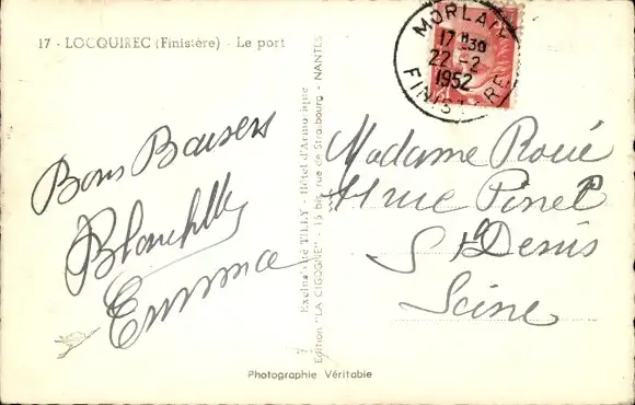 Zustand, siehe Scan, gelaufen, 1952 - ca 14 cm X 9 cm