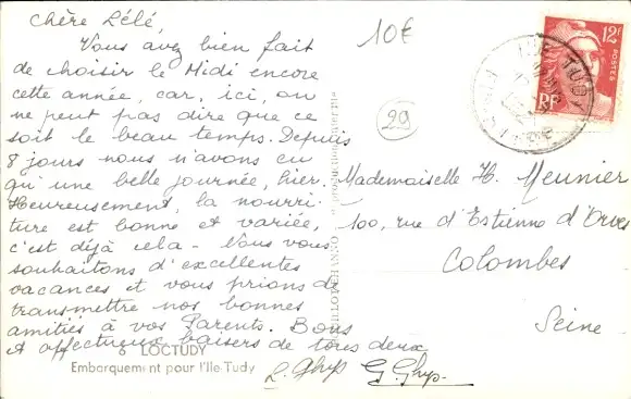 Ak Loctudy Finistère, Boarding für Ile Tudy