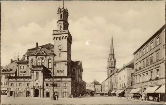 Ak Löbau Sachsen, Markt, Rathaus und Kirche