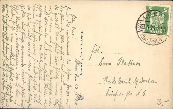 Zustand, siehe Scan, gelaufen, 1924 - ca 14 cm X 9 cm