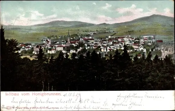Ak Löbau in Sachsen, Blick vom Honigbrunnen, Panorama vom Ort