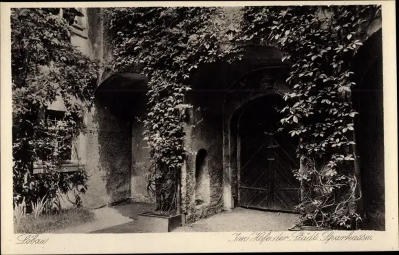 Ak Löbau in Sachsen, Im Hofe der Städt. Sparkasse