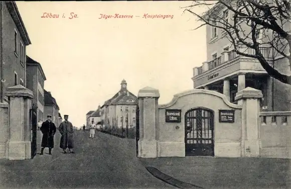 Ak Löbau in Sachsen, Jäger Kaserne, Haupteingang