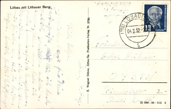 Zustand, siehe Scan, gelaufen, 1952 - ca 14 cm X 9 cm