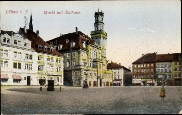 Ak Löbau in Sachsen, Markt mit Rathaus