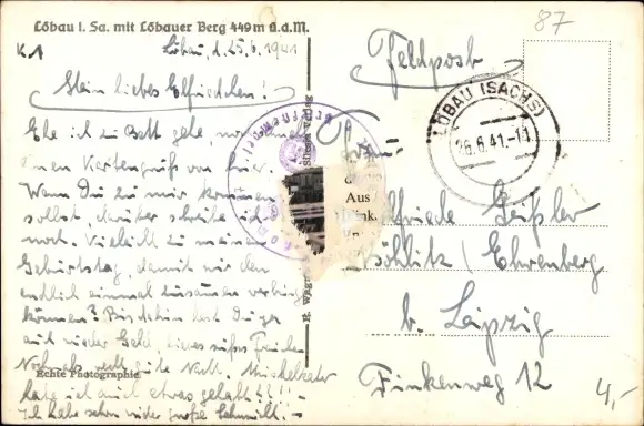 Zustand, siehe Scan, gelaufen, 1941 - ca 14 cm X 9 cm