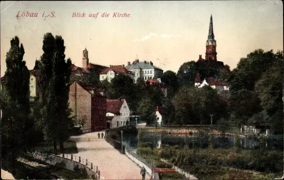 Ak Löbau in Sachsen, Ortsansicht, Blick auf die Kirche