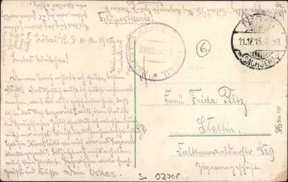 Zustand, siehe Scan, gelaufen, 1915 - ca 14 cm X 9 cm