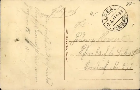 Zustand, siehe Scan, gelaufen, 1917 - ca 14 cm X 9 cm