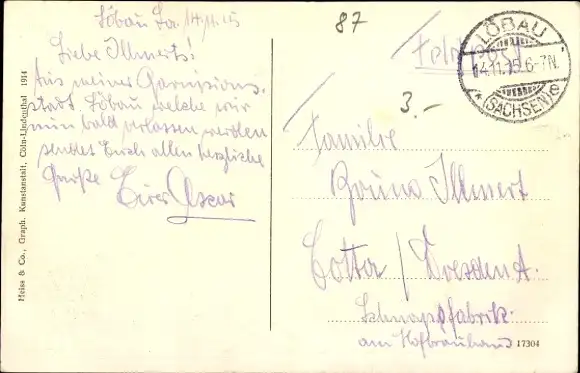 Zustand, siehe Scan, gelaufen, 1915 - ca 14 cm X 9 cm