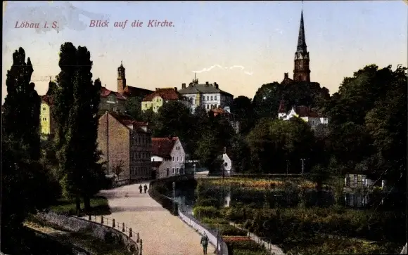 Ak Löbau in Sachsen, Teilansicht, Kirche