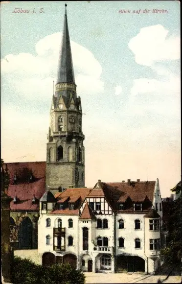 Ak Löbau in der Oberlausitz Sachsen, Blick auf die Kirche