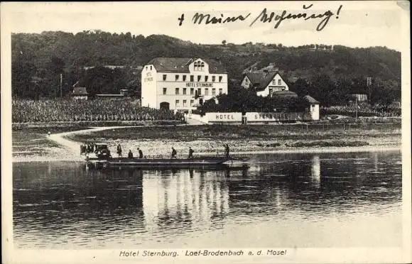 Ak Löf Loef Brodenbach an der Mosel, Hotel Sternburg, Fähre
