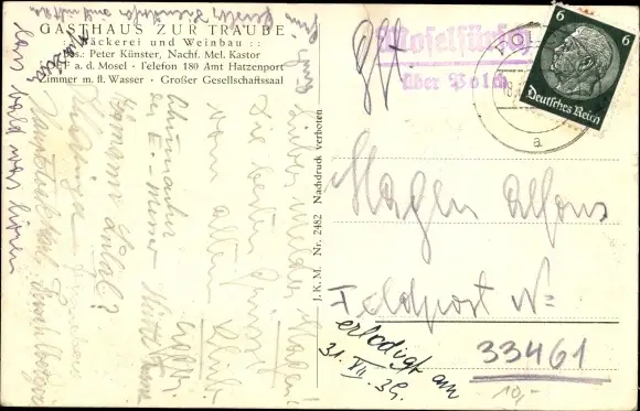 Zustand, siehe Scan, gelaufen- Inh. Peter Künster, Nachf. Mel. Kastor - ca 14 cm X 9 cm