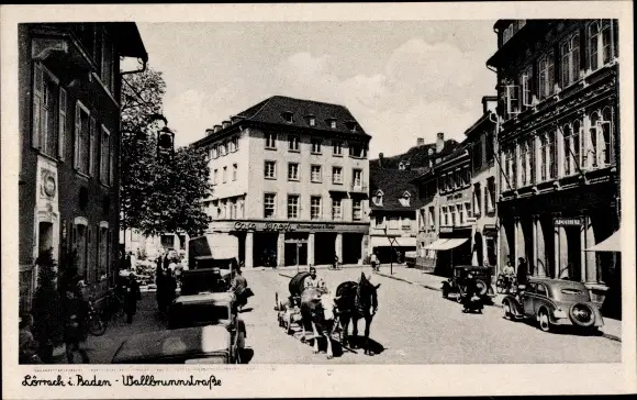 Ak Lörrach in Baden, Wallbrunnstraße, Cafe, Auto