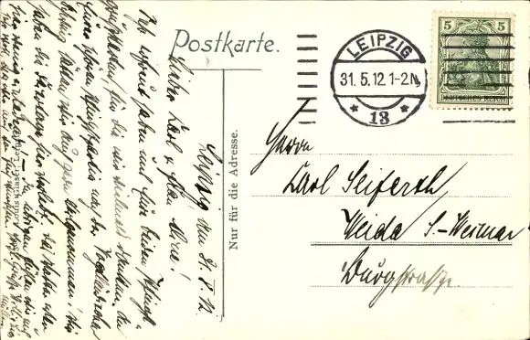 Zustand, siehe Scan, gelaufen, 1912 - ca 14 cm X 9 cm