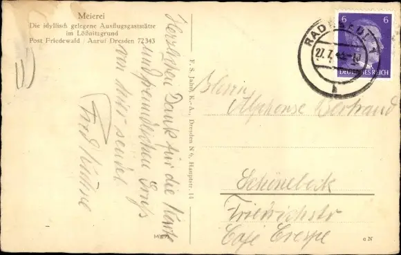 Zustand, siehe Scan, gelaufen, 1943 - ca 14 cm X 9 cm