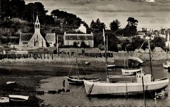 Ak Loguivy les Lannion Côtes d’Armor, Kirche, Boote