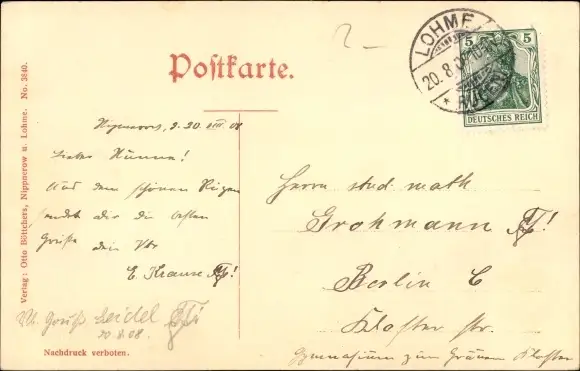Zustand, siehe Scan, gelaufen, 1908 - ca 14 cm X 9 cm