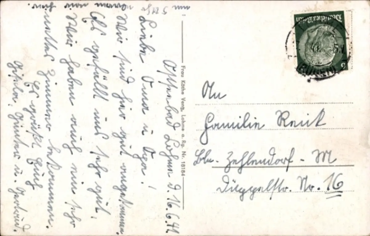 Zustand siehe Scan, gelaufen, 1941 - ca 14 cm X 9 cm