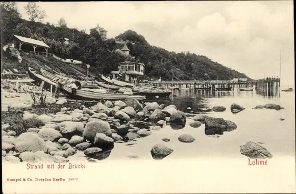 Ak Lohme auf Rügen, Strand, Brücke, Boote