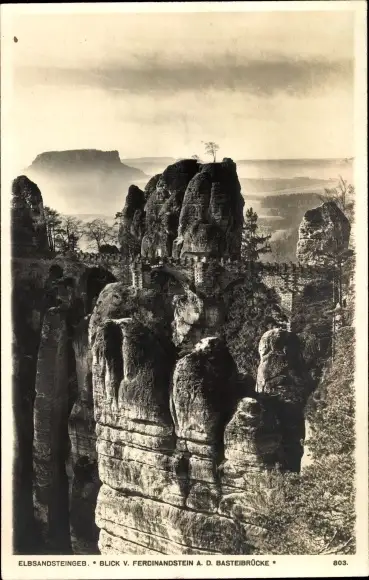 Ak Lohmen Sächsische Schweiz, Basteibrücke vom Ferdinandstein aus