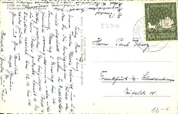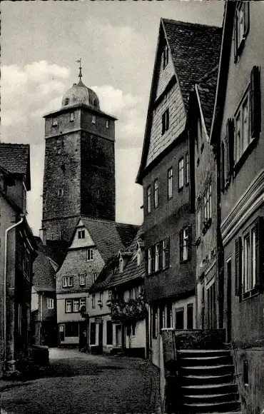 Ak Lohr am Main Unterfranken, Fischergasse, Stadtturm, Treppe