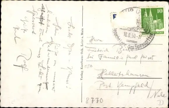 Zustand, siehe Scan, gelaufen, 1950 - ca 14 cm X 9 cm