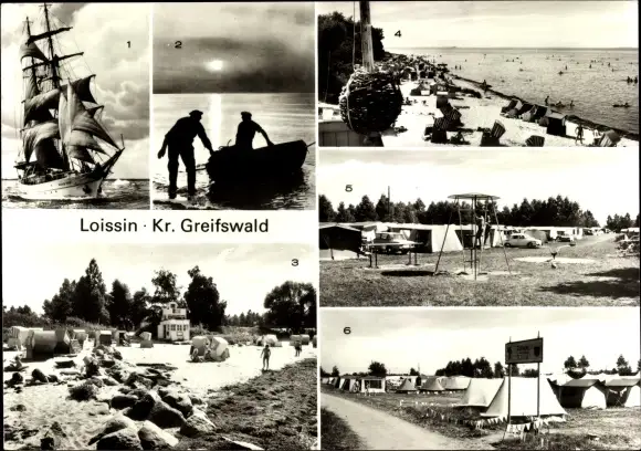 Ak Loissin Mecklenburg Vorpommern, Segelschulschiff Wilhelm Pieck, Strand am Zeltplatz, Schiffer