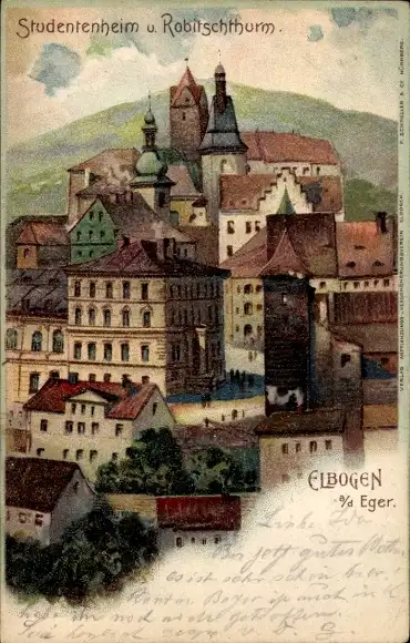 Ak Loket Elbogen Region Königgrätz, Studentenheim, Robitschturm