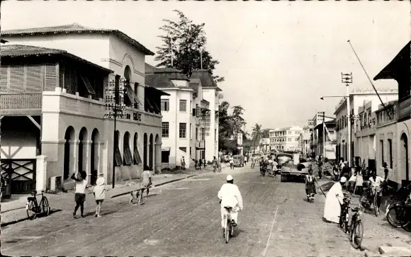 Ak Lomé Togo, Rue du Commerce et Hotel du Golfe, Straßenpartie, Radfahrer