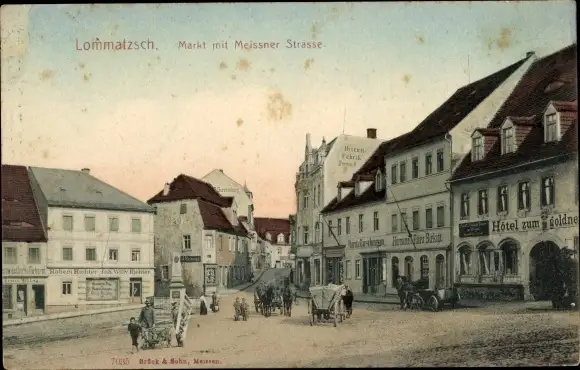 Ak Lommatzsch in Sachsen, Markt mit Meissner Straße, Hotel