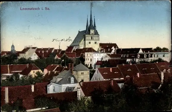 Ak Lommatzsch in Sachsen, Stadtansicht mit Kirche